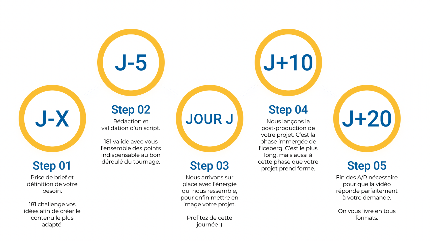 Toujours partir de vous. 181 n’est que le moyen de concrétiser votre projet. Notre rôle est de transposer votre idée (parfois une bribe d’idée) en une vidéo conforme à votre ADN, pour booster votre image de marque.